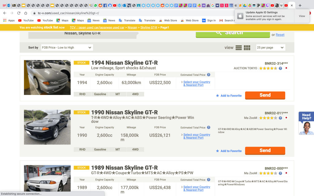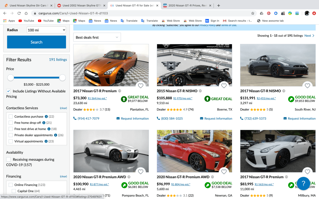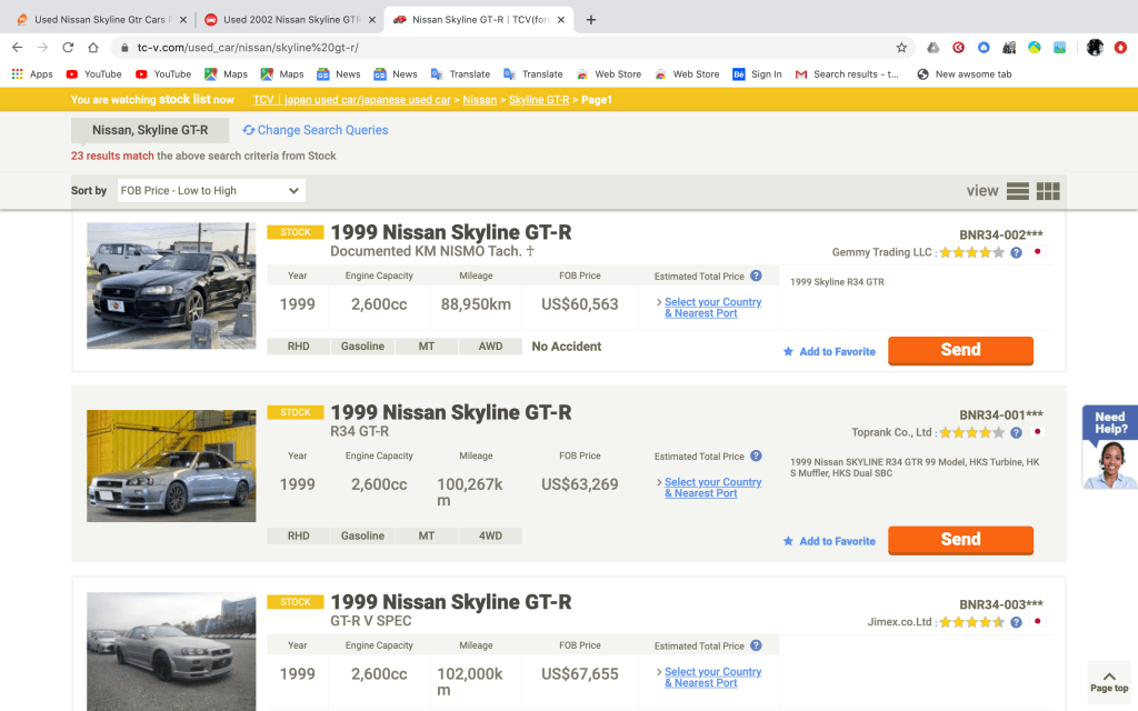 For the R34 it’s not much better. There are quite a lot of R34 cars in the USA