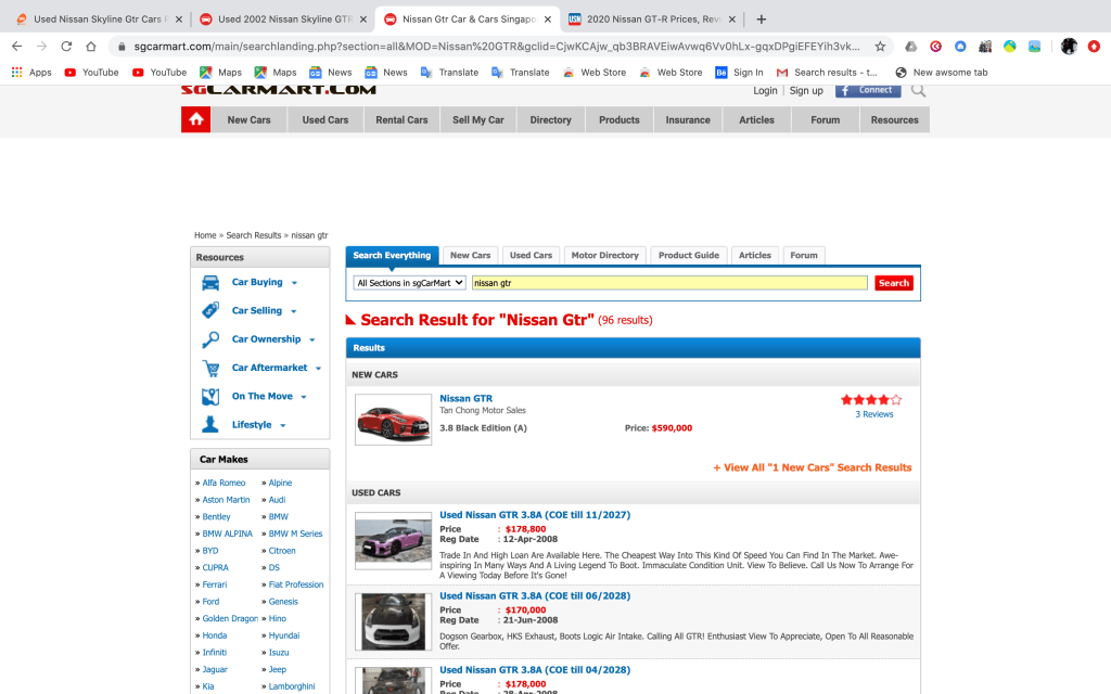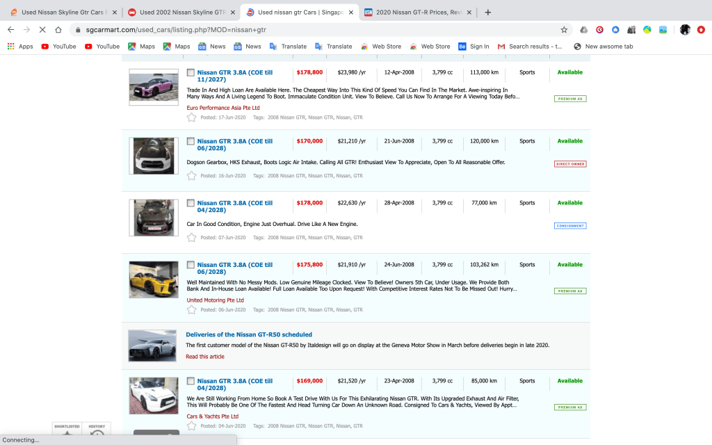 New, the GTR goes for half a million Singapore Dollars not including COE which is again typical highway robbery fashion for the country.